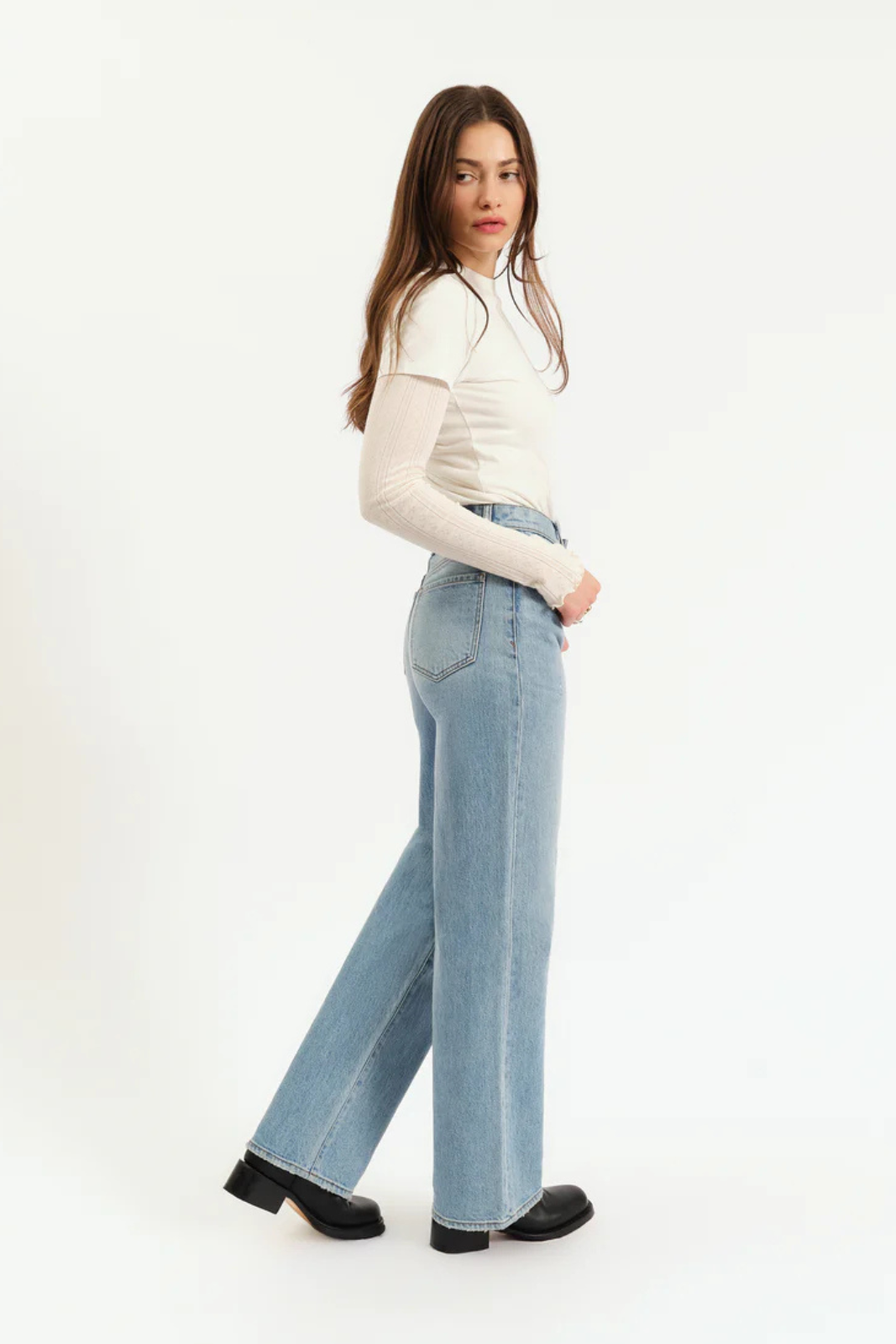 The City Straight from Daze in Be Mine Vintage is a high rise straight leg jean in a timeless light blue wash. Clean hems and straight lines make this a versatile jean for any occasion.