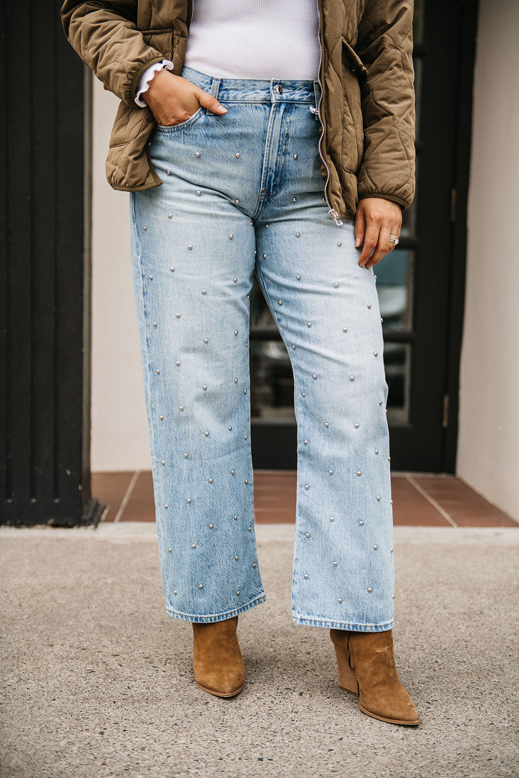The best-selling jean that understands proportions. Lexi sits at the perfect mid-rise with Pistola's signature bowed straight leg, and a subtle curve at the knee that creates dimension without effort. Finished with a 29" inseam, the silhouette tapers to a cropped ankle with a clean hem. Crafted from their rigid denim in Aries, a light blue wash adorned with subtle stud details that feel refined and intentional, never overdone. Your must-have statement jean for making an impact with sophisticated appeal.