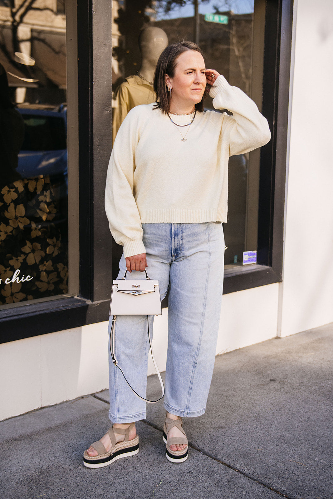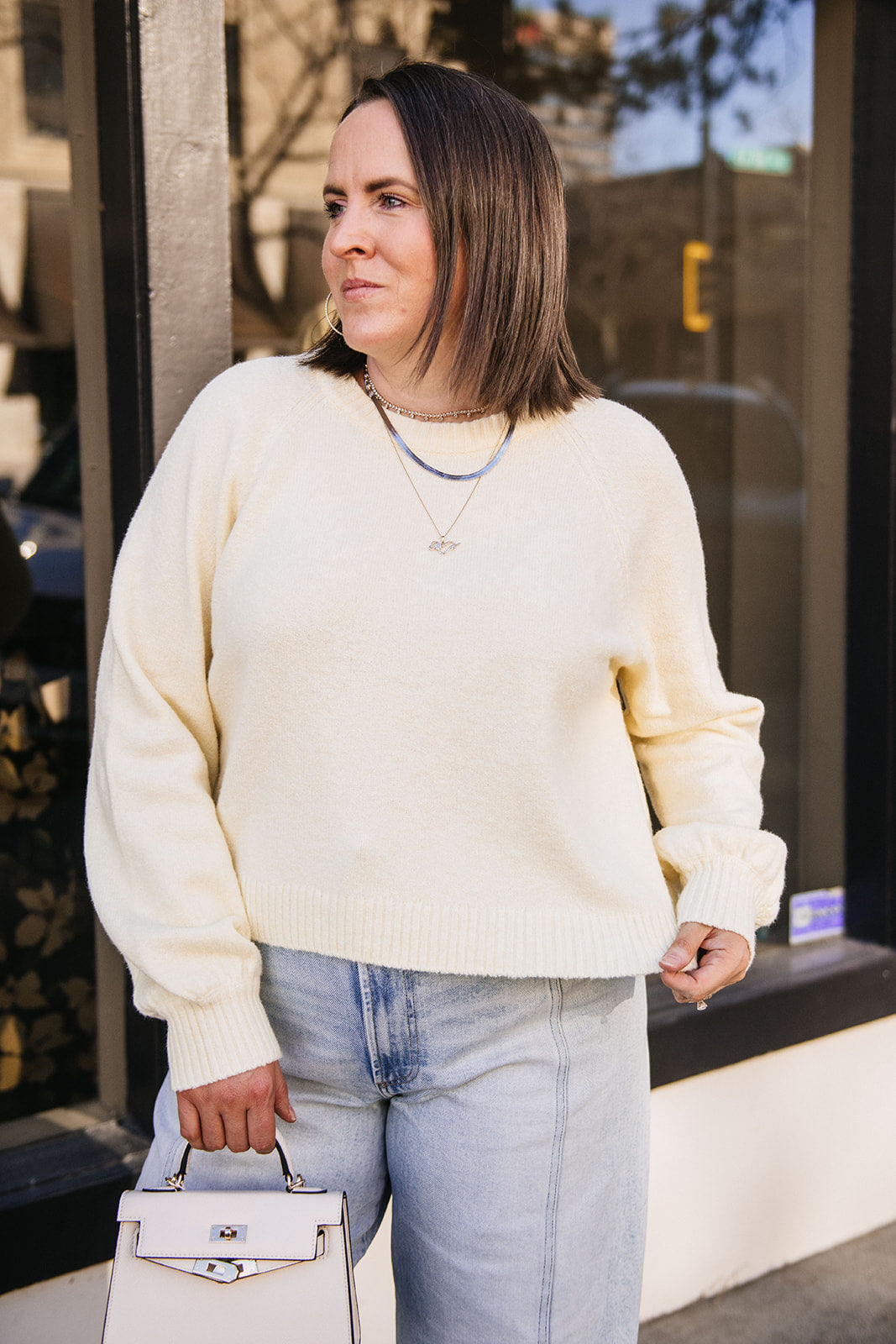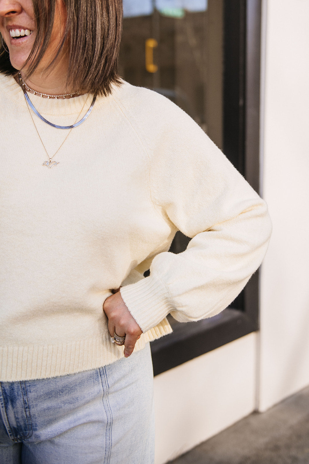 This textured cotton-blend sweater has that soft, airy feel you’ll never want to take off. The relaxed silhouette and subtle high-low hem make it the perfect transitional layer for breezy days and laid-back nights.